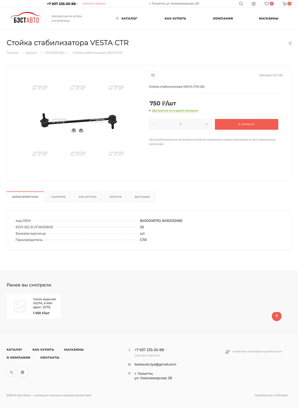 Интеграция с 1С позволила полностью исключить «человеческий фактор» при обновлении цен и остатков. На сайте всегда актуальная информация о наличии деталей на складе.