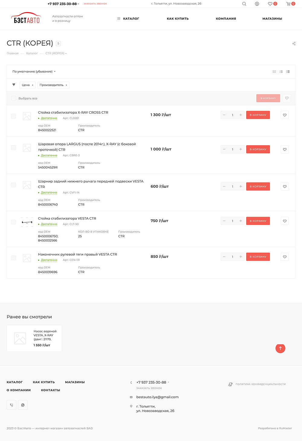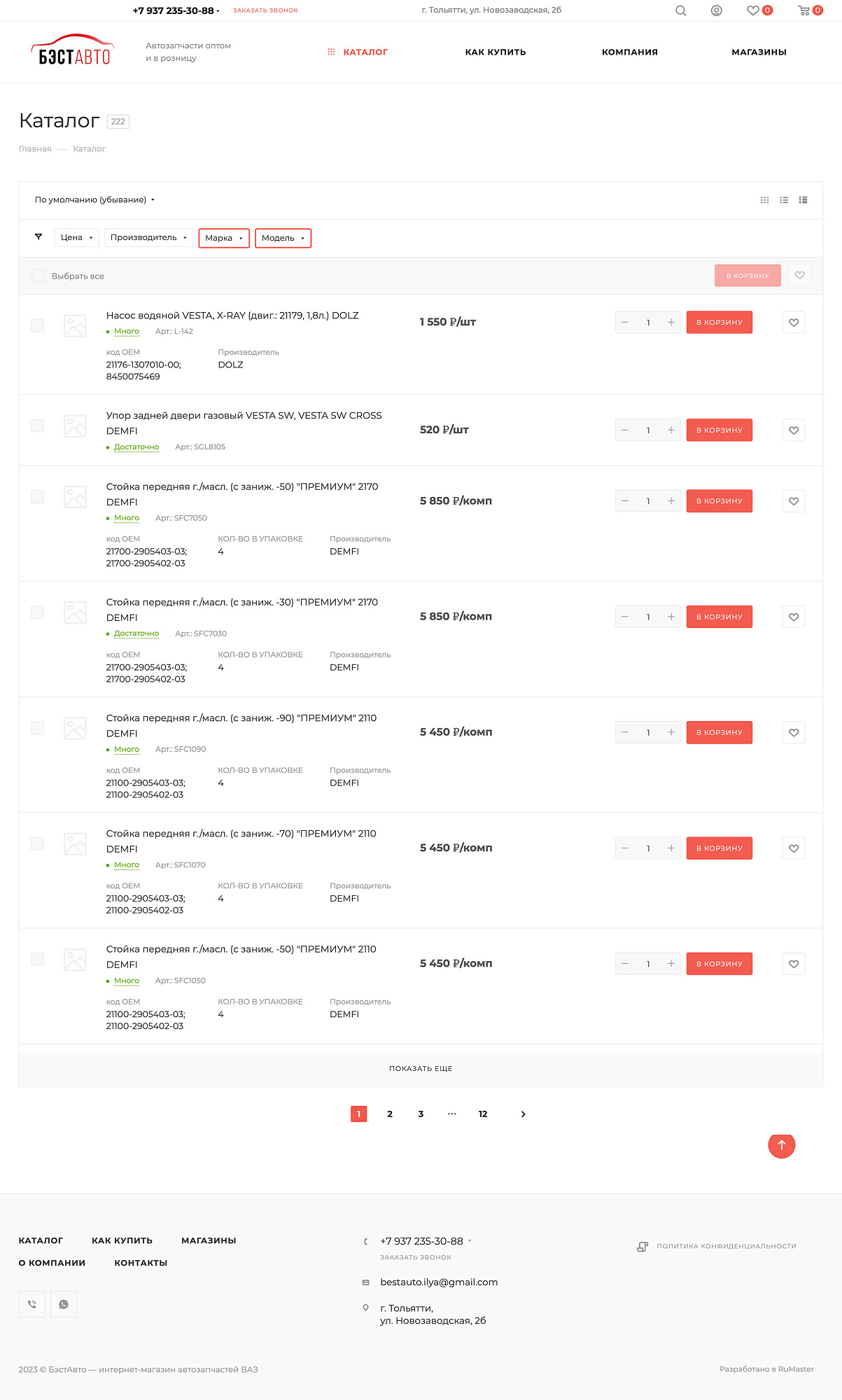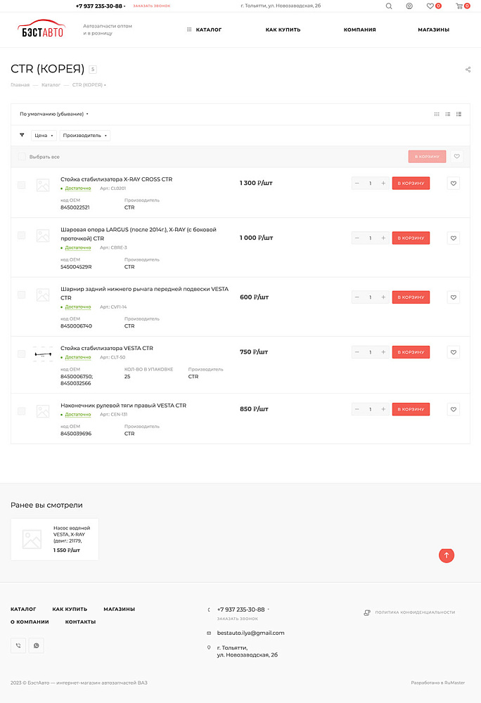 Разработать современный интернет-магазин с удобным каталогом автозапчастей для LADA.