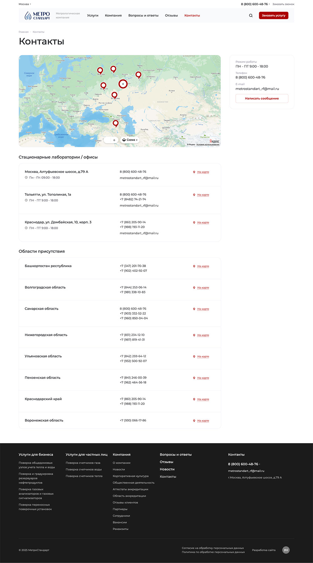Контакты: Карта, адреса лабораторий, телефоны, форма обратной связи, график работы.
